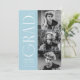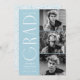 Invitations branchés de la fête de remise des diplômes avec les trois photos du diplômé situées à droite du design dans une mise en page verticale. "Grad" est présenté en lettres Art déco blanches et modernes avec un arrière - plan bleu ciel. Personnalisez l'invitation moderne de la fête de remise de diplômes en photo en ajoutant le nom du diplômé, l'année de remise de diplômes et le nom de l'école. La conception inverse pour afficher les détails de votre fête de graduation avec un arrière - plan tourbillon géométrique bleu et blanc clair. Parfait pour les bacheliers et collégiaux !