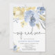 Invitation Sip and See baby boy, bleu poussiéreux fleuri jaun