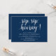 Calligraphie moderne (Sip, Sip, Hooray) Carte d'invitation à la douche nuptiale. Invitation les invités avec cette carte d'invitation parfaite. Ajoutez les détails de votre douche nuptiale dans le libellé bleu marine correspondant.