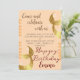 Carte d'invitation de fête d'anniversaire sur le thème fantaisiste et amusant de sous l'océan, avec une queue de sirène de couleur dorée. Le texte en haut dit "Célébrez avec nous". Thème de fête amusant pour l'anniversaire d'une fille. n'oubliez pas de personnaliser le design selon les goûts de votre petite.