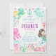 Invitez vos amis à une fête d'anniversaire sur le thème sous l'océan avec ces magnifiques invitations d'anniversaire aquarelle représentant une sirène avec des animaux marins, notamment des poissons, des tortues de mer, des pieuvres, des hippocampes et des méduses.