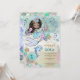 Les petites filles adorent les choses magiques. Cette invitation magique de 1er anniversaire sur le thème de la sirène et du dauphin sous l'océan ravira les invités avec une touche fantaisiste, avec une sirène, un dauphin, une tortue et des coquillages, dans de jolies couleurs rose, bleu-vert et violet pâle. Des écailles de queue de sirène au dos de l'invitation. Un monde sous-marin de magie et de mystère.