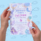 Faites un splash avec cette magique Mermaid 5th Birthday Invitation! Doté d'une aquarelle pastel illustrant les sirènes, le corail et les étoiles de mer, ce décor sur le thème de la mer est parfait pour la journée spéciale de votre petite fille. La palette rêveuse de violets, bleus et roses ajoute une touche fantaisiste, tandis que les polices élégantes mettent en valeur le nom et les détails de l'anniversaire de votre enfant. Personnalisez-le facilement avec vos infos de fête. Idéal pour une fête d'été autour de la piscine, un bain de plage ou une fête sur le thème des sirènes !