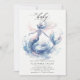 Une invitation élégante, élégante et chic au baby shower féminin avec un thème de sirène sous la mer, avec une magnifique sirène peinte dans des aquarelles rêvées aux tons bleu, turquoise et rose, ainsi que des touches de mousseux et de shimmers (ce sont des effets numériques).