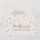 Cette carte de réponse RSVP de site web de mariage à pois dorés est parfaite pour un mariage élégant. Le design simple présente de jolis confettis dorés sur un fond champagne crémeux avec une belle calligraphie en faux feuillet doré. Personnalisez la carte de réponse en ligne avec votre date limite de réponse et l'adresse de votre site web de mariage. Si vos invités n'ont pas besoin de mot de passe pour le site web, vous pouvez remplacer le texte par un message court et doux pour vos invités ou une méthode alternative de réponse.