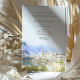 Invitation vos invités à une célébration européenne romantique avec ce faire-part de mariage à couper le souffle. L'architecture présente une aquarelle douce et rêveuse illustration de la ville côtière ensoleillée de Sitges, en Espagne, qui capture ses bâtiments blancs emblématiques et la mer Méditerranée sereine. La typographie élégante et minimaliste est placée au-dessus de l'oeuvre, créant une atmosphère sophistiquée et moderne. Cette invitation est parfaite pour un mariage de destination, une fête d'été, ou pour tout couple rêvant d'un événement balnéaire chic en Espagne. Tout le texte est entièrement personnalisable pour partager les détails de votre journée spéciale.