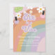 Spa Party Six est un invitation Vibe Retro Rainbow 6e anniversaire avec marguerites, vernis à ongles et concombres.