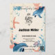 Plongez dans le plaisir avec cette invitation de 6ème anniversaire avec un thème ludique dauphin, tortue de mer et étoiles de mer. Placé sur une palette de couleurs d'indigo et de corail, ce design reflète l'esprit aventureux d'un enfant de six ans. Parfait pour une soirée sous-marine ou sur le thème de l'océan, cette invitation ouvre la voie à une célébration passionnante et mémorable. Personnalisez-le avec les détails de votre fête pour un anniversaire unique et amusant.
