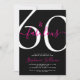 Sixty and Fabulous script, a minimal black and pink modern 60th birthday invitation that you can personalize and send out for your sixtieth birthday party. The words "60 and Fabulous" are set in a popular script font. The text colors can be changed using the edit menu.