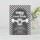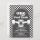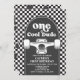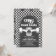 Skateboard One Cool Dude, 1er anniversaire invitation avec chèque noir et skateboard.