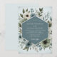Evoke a serene and elegant atmosphere with this painterly botanical design. A sophisticated palette of muted slate blue and soft sage green provides a cool, tranquil backdrop. Delicate white anemones with dark centers bloom amidst lush, watercolor-style foliage, creating a composition of timeless beauty.