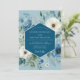 Experience a serene and romantic atmosphere with this elegant floral design. A dreamy arrangement of dusty blue roses and delicate white anemones creates a beautiful composition. Soft, silvery-green foliage adds a touch of natural grace, all set against a soft blue backdrop for a cohesive, artistic feel.