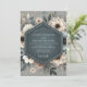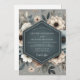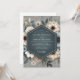 Delicate blooms in muted slate blue and cream hues are artfully arranged against a subtly textured background. This design evokes a serene, romantic mood with its soft floral artistry.