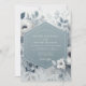 A dreamy, watercolor design features delicate slate blue blossoms and foliage. The soft, painterly style evokes a romantic and ethereal mood.