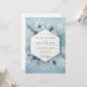 A delicate frosted floral design in varying shades of slate blue evokes a serene winter wonderland. The airy blooms and pine sprigs create a romantic and ethereal atmosphere perfect for a cool-toned celebration.