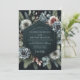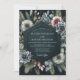 Embrace an atmosphere of moody romance with this elegant artistic design. A deep, shadowy backdrop sets the stage for a luminous floral arrangement in a painterly style. Delicate anemones, soft roses, and silvery eucalyptus leaves in shades of dusty blue, blush pink, and pale green create a captivating display.