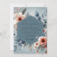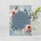 A dreamy wash of slate blue sets a serene tone for this elegant design. Soft, painterly blossoms in shades of peach and cream bloom gracefully amidst muted green foliage. This romantic composition creates an ethereal and artistic atmosphere, perfect for a sophisticated and stylish union.