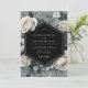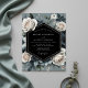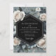 A lavish display of pale roses and deep blue foliage evokes a sense of sophisticated romance. This design blends rich, dark botanical elements with soft, creamy blooms for a dramatic yet elegant feel. The intricate floral arrangement creates a moody and luxurious atmosphere.