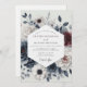 Evoke a sense of moody romance with this dramatic floral composition. Painterly blooms in deep slate blue, rich burgundy, and soft ivory create a stunning visual contrast. This elegant and artistic arrangement of peonies, roses, and anemones is perfect for a sophisticated and memorable union.
