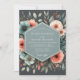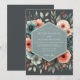 This elegant design features a moody and romantic aesthetic. A stunning arrangement of dusty teal anemones and soft coral ranunculus blooms against a deep slate background. The sophisticated botanical artwork, accented by muted green foliage, creates a dramatic and artistic atmosphere for your special day.