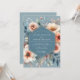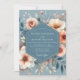 Embrace a soft, romantic mood with this elegant painterly design. A dusty slate blue background sets the stage for delicate, watercolor-style florals. Lush anemones and roses in shades of peach, blush coral, and creamy ivory are nestled among muted greenery. This dreamy arrangement is perfect for a sophisticated union.