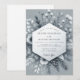 Evoke the quiet beauty of a winter morning with this elegant artistic design. A monochromatic palette of slate grey, silver, and soft white creates a sophisticated and moody atmosphere. The composition features delicate anemone-like blossoms, frosty berries, and pine-like greenery, all rendered in a soft, painterly style. This design is perfect for a chic and romantic winter union.