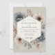 A romantic design featuring a dreamy bouquet of soft, painterly florals. The elegant composition blends hazy slate blue and dusty blush pink against a gentle ivory background. Lush peonies and delicate buds are rendered in a beautiful watercolor style, creating a timeless and artistic feel for your special day.