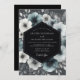 Embrace a mood of dramatic romance with this elegant floral design. Painterly anemones in beautiful shades of slate blue and soft white stand out against a dark charcoal backdrop. Subtle, muted foliage adds a touch of organic texture, creating a sophisticated and memorable composition for your nuptials.
