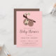 Invitation Sloth Baby shower Girl rose Brown mignonne