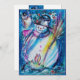 Aquarelle et peinture acrylique Whimsical, colorée et cool dans le bleu vif, le rose, les couleurs avec des fioritures noires et rouges.