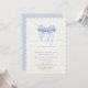 Make your baby shower announcement unforgettable with an invitation that combines adorable design and practicality. The baby blue coquette serves as a lovable centerpiece, drawing attention while keeping event information accessible. This invite is more than just a card—it’s a preview of the happiness awaiting your family, perfect for sharing your joy with others. Its distinctive look will leave guests eager to join, ensuring a warm and welcoming start to your celebration.