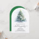 A snowy decorated Christmas tree accents these arch-top holiday party invitations with your details in chic lettering.