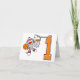 Jolie invitation de premier anniversaire à thème sportif avec un singe chaussette, de basket et de cerceau design et un grand nombre d'orange 1.