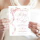 Cette élégante invitation à la douche nuptiale comporte l'expression "She's Tying the Knot" dans un script luxueux et fluide, accentué par un ruban rose pâle et une illustration de l'arc. Avec sa calligraphie raffinée et ses tons pastel romantiques, ce design apporte une touche féminine intemporelle à toute célébration de douche nuptiale.