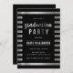 Invitation Soignée Black & Silver Stripes Graduation Party