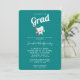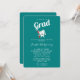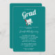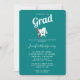 Une invitation à la remise de diplômes avec l'illustration d'une grande dent blanche de style dessin animé souriant joyeusement en tenant une brosse à dents rouge et en donnant le signe pouce vers le haut.