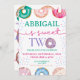 Cette invitation à l'anniversaire sur le thème du beignet sucré présente des illustrations de beignet d'aquarelle et une jolie typographie moderne "un doux" et "un doux deux". Le texte est modifiable sur cette invitation de fête d'anniversaire photo invitations et des cartes postales économiques sont disponibles aussi! Cette conception est neutre du point de vue du genre et entièrement personnalisable. Trouvez les articles correspondants dans ma boutique.