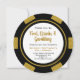 Invitation Soirée Casino Jeton de Poker Noir Blanc Or
