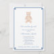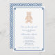 La conception comporte une illustration d'ours en peluche aquarelle, entourée d'une bordure "grecque" classique et d'un support motif. Le jouet mou était à l'origine peint à la main par moi avant d'être scanné sous forme numérique. J'ai configuré le modèle pour un Baby shower mais tous les champs de texte sont personnalisables selon vos besoins. Vous pouvez modifier la couleur de contraste de la bordure de clé grecque à l'avant et du motif à l'arrière (représentée ici en bleu foncé) en n'importe quelle couleur que vous souhaitez en entrant l'outil de conception (sous la zone de personnalisation du texte, cliquez pour "customiser plus loin"), puis en modifiant la couleur arrière - plan de chaque côté.