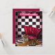 Invitation Soirée Disco Club Ladies Night ou Enterrement de Vie de Jeune Fille. Carreaux noirs et blancs avec enseigne rose fluo et Chaise longue rose rouge avec Tigre. Peut être utilisé pour toute célébration ou événement. Personnalisez avec vos propres détails.