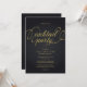 Invitation de soirée cocktail moderne et sophistiquée en noir et or avec une typographie élégante.