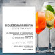 Un blanc minimaliste moderne avec texte gris ménage cocktail pour vous d'invitation vos amis et associés pour vous aider à célébrer votre nouvelle demeure.