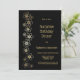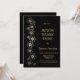 Une élégante invitation à dîner surprise noire avec un spray de fleurs d'or.