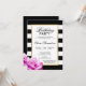 Invitation modèle moderne et tendance pour la fête d'anniversaire pour fille/femme à rayures blanches et noires. Faux cadre or avec rose rose à l'angle. Tout le texte peut être modifié et modifié : police, couleur et taille. Contactez le concepteur pour d'autres variantes ou de l'aide.