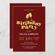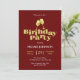 L'invitation d'anniversaire moderne comprend du champagne d'or avec un texte de typographie audacieux "fête d'anniversaire" sur arrière - plan bordeaux. Personnalisez les invitations de fête d'anniversaire en ajoutant votre nom et les détails de votre fête.