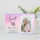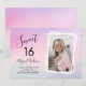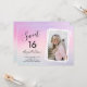 Jolie et girly Sweet 16 anniversaire invitation à la fête avec pastel violet arrière - plan et élégante police calligraphie. Téléchargez votre photo préférée.