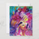 Nocturne vénitien coloré avec un caractère expressif et romantique : joueur de violon fantaisiste avec des costumes de fuchsia rose scintillant à plumes et un hibou drôle au clair de lune, avec une belle rose rouge dorée au verso de la carte. Peinture à l'aquarelle dans des couleurs rouge vif, vert, bleu, jaune, paillettes d'or, inspirée de Piero (Pierrot), Comédie de l'Art (Commedia dell'arte) et Carnaval de Venise. C'est une belle carte d'annonce pour les vacances, les fêtes costumées de Mardi Gras, les occasions spéciales, les fêtes d'anniversaire d'enfants, les 16 ans, le bal masqué du Nouvel An, la Saint-Valentin, les anniversaires, les rassemblements, à peu près n'importe quel événement que vous souhaitez !