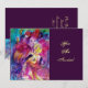 Nocturne vénitien coloré avec un caractère expressif et romantique : joueur de violon fantaisiste avec des costumes de fuchsia rose étincelants et emplumés et un hibou drôle sous la lumière de la lune. Peinture à l'aquarelle dans des couleurs vives rouge, vert, bleu, jaune, avec des étincelles dorées, inspirée de Pierrot, de la Comédie de l'Art (Commedia dell'arte) et du Carnaval de Venise. C'est une belle carte d'annonce pour les vacances, les soirées costumées de Mardi Gras, les occasions spéciales, les fêtes d'anniversaire d'enfants, les sweet 16, le bal masqué du Nouvel An, la Saint-Valentin, les anniversaires, les rassemblements, à peu près n'importe quel événement que vous souhaitez !