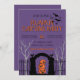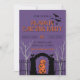 Invitez vos amis à une soirée festive de créativité et de plaisir avec notre invitation à une soirée de décoration de citrouilles. Ce design saisissant présente un fond violet riche qui crée l'ambiance parfaite pour Halloween. En bas, les silhouettes de l'entrée d'un cimetière et d'une clôture effrayante encadrent l'invitation, tandis que des arbres sinistres se dressent en arrière-plan, ajoutant un élément de mystère.