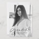 Invités Invitations pour célébrer la grade avec des invitations modernes de remise de diplômes de photo. Les élégantes invitations à la fête de remise de diplômes présentent la photo verticale du diplômé avec "Graduate" dans une superposition de script noir élégant. Personnalisez le devant des invitations de la fête de remise de diplômes en y ajoutant le nom du diplômé, le nom de l'école et l'année de remise de diplômes. Le dos de l'invitation présente les détails de votre fête de remise de diplômes avec un arrière - plan motif noir et blanc dessiné à la main.